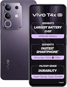 The vivo T4x 5G combines powerful performance, sleek design, and all-day battery life in one stylish package. Powered by the MediaTek Dimensity 7300 5G processor and paired with fast RAM and ample storage options, this smartphone is built for smooth multitasking and reliable speed. Its 6.72-inch FHD+ display features a 120Hz refresh rate and 1050 nits peak brightness, delivering clear, fluid visuals even under bright light. The 50MP AI dual rear camera and 8MP front camera are enhanced with smart features like AI Erase and AI Photo Enhance, letting you capture and refine every moment with ease. With a military-grade certified build, ergonomic quad-curved design, massive 6500 mAh battery, 44W FlashCharge, dual stereo speakers, and the intuitive Funtouch OS 15 based on Android 15, the vivo T4x 5G is engineered to deliver immersive entertainment and day-long performance—no matter which variant you choose.